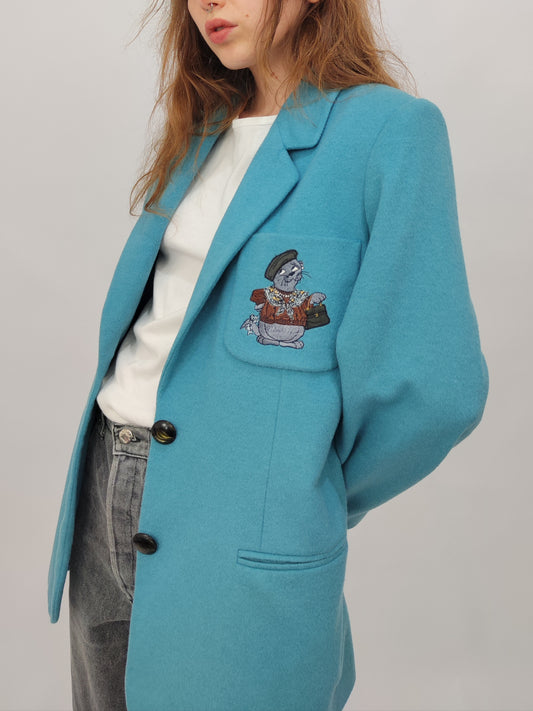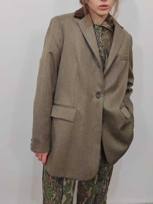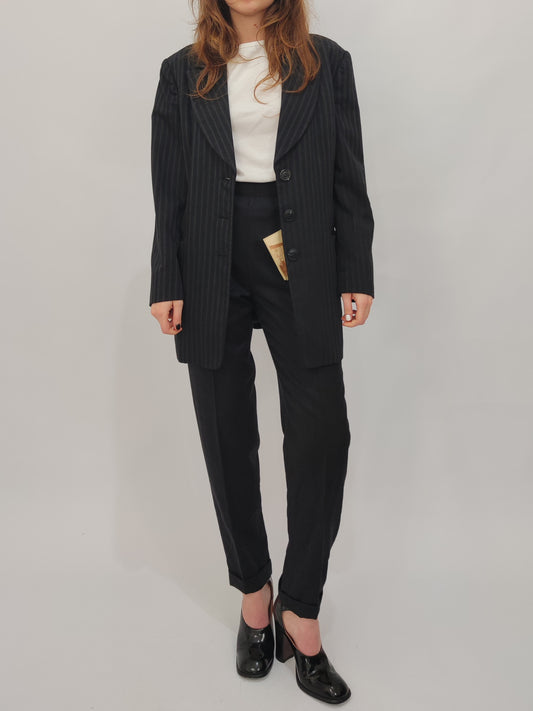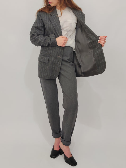 EsauritoPure New Wool Pinstripe Gray Blazer