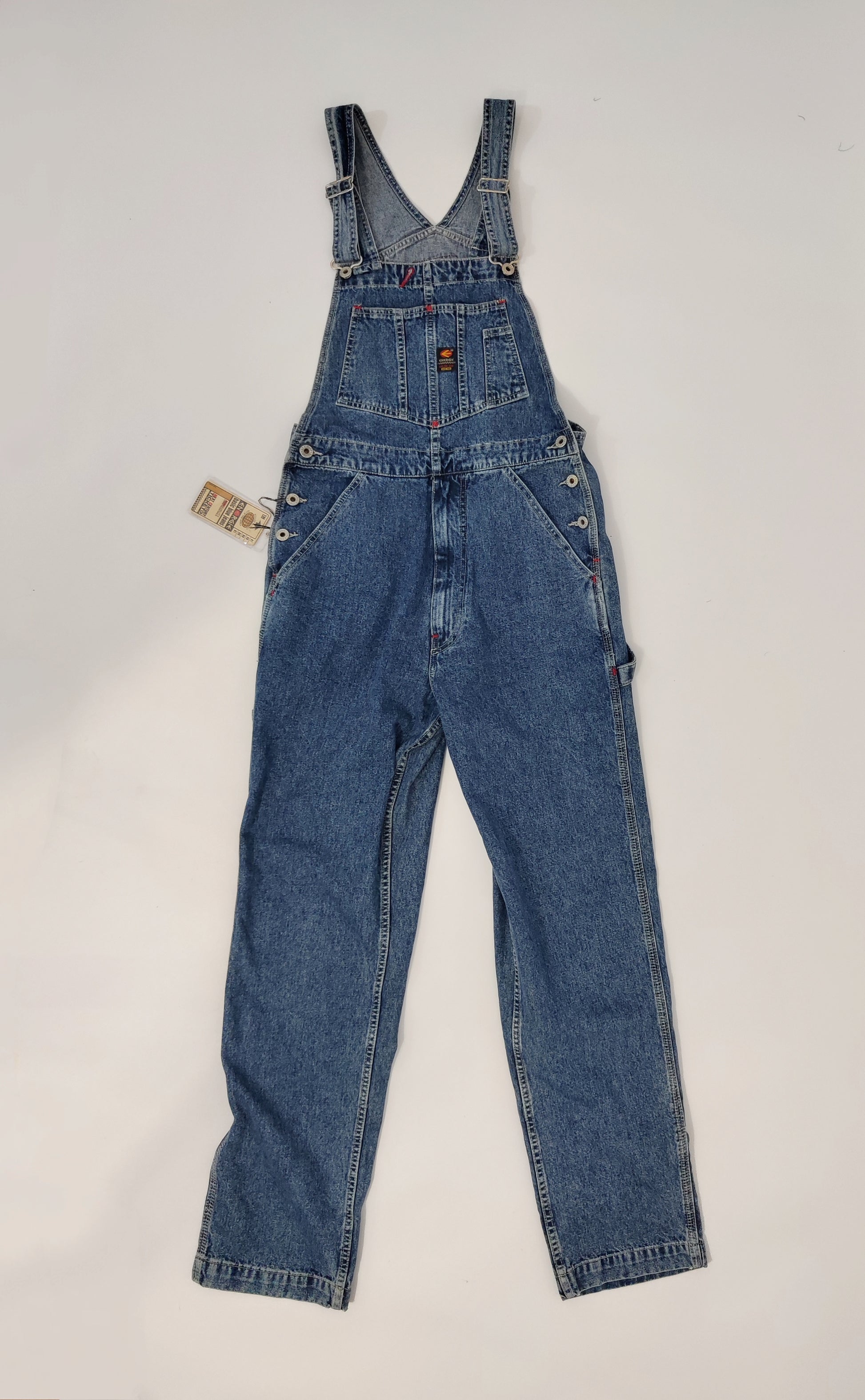 Salopette vintage by Energie. Deadstock, nuova con cartellino originale. Modello carpenter in denim a lavaggio medio, vita alta e gamba dritta. Bretella regolabile.