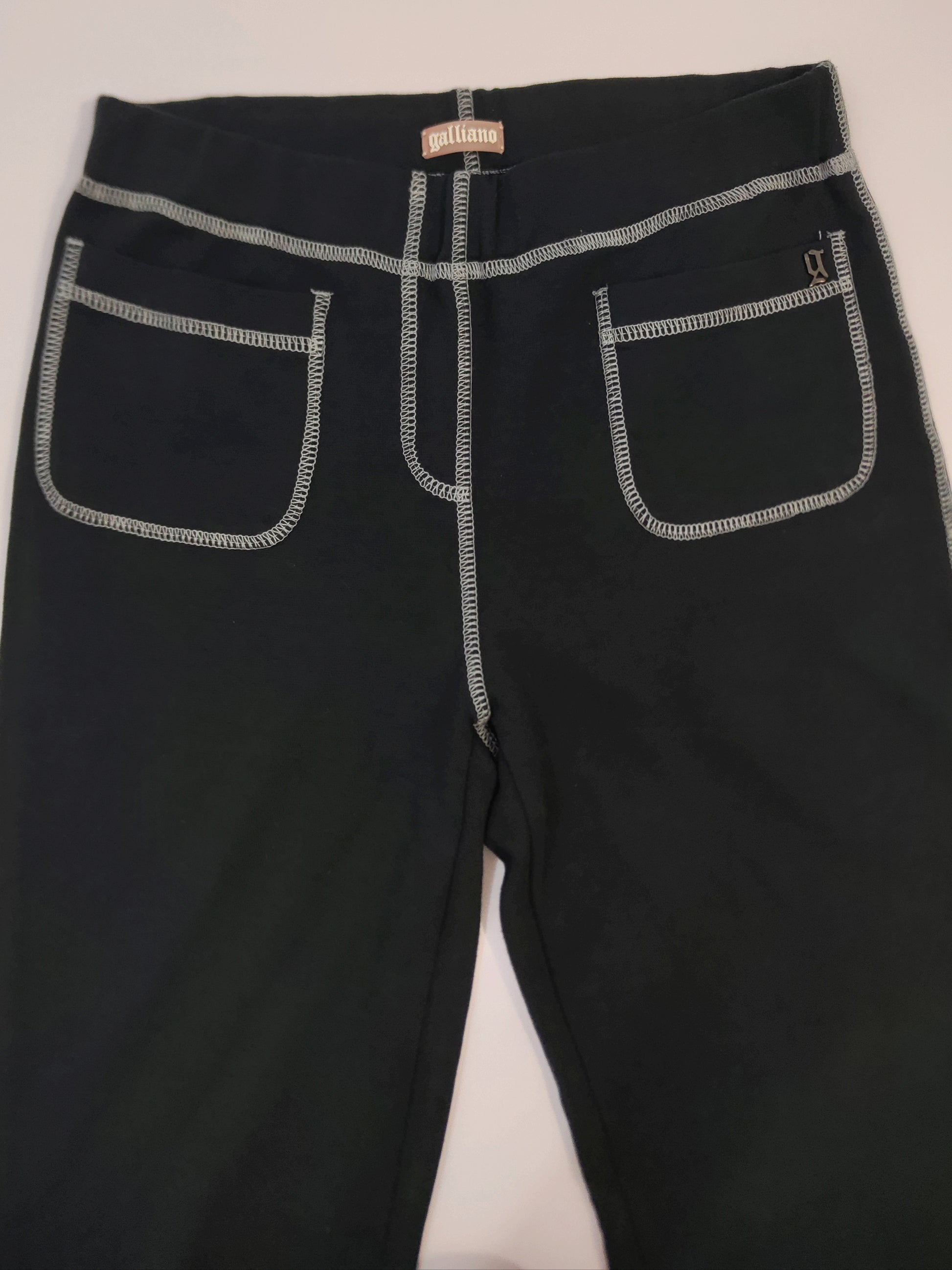 John Galliano, pantaloni elastici in morbido cotone. Vita medio-alta con due comode tasche frontali, colore nero con cuciture a contrasto che fungono da elemento decorativo. Super comodi e versatili, perfetti per tutti i giorni da abbinare a t-shirt, felpe e blazer oversize.