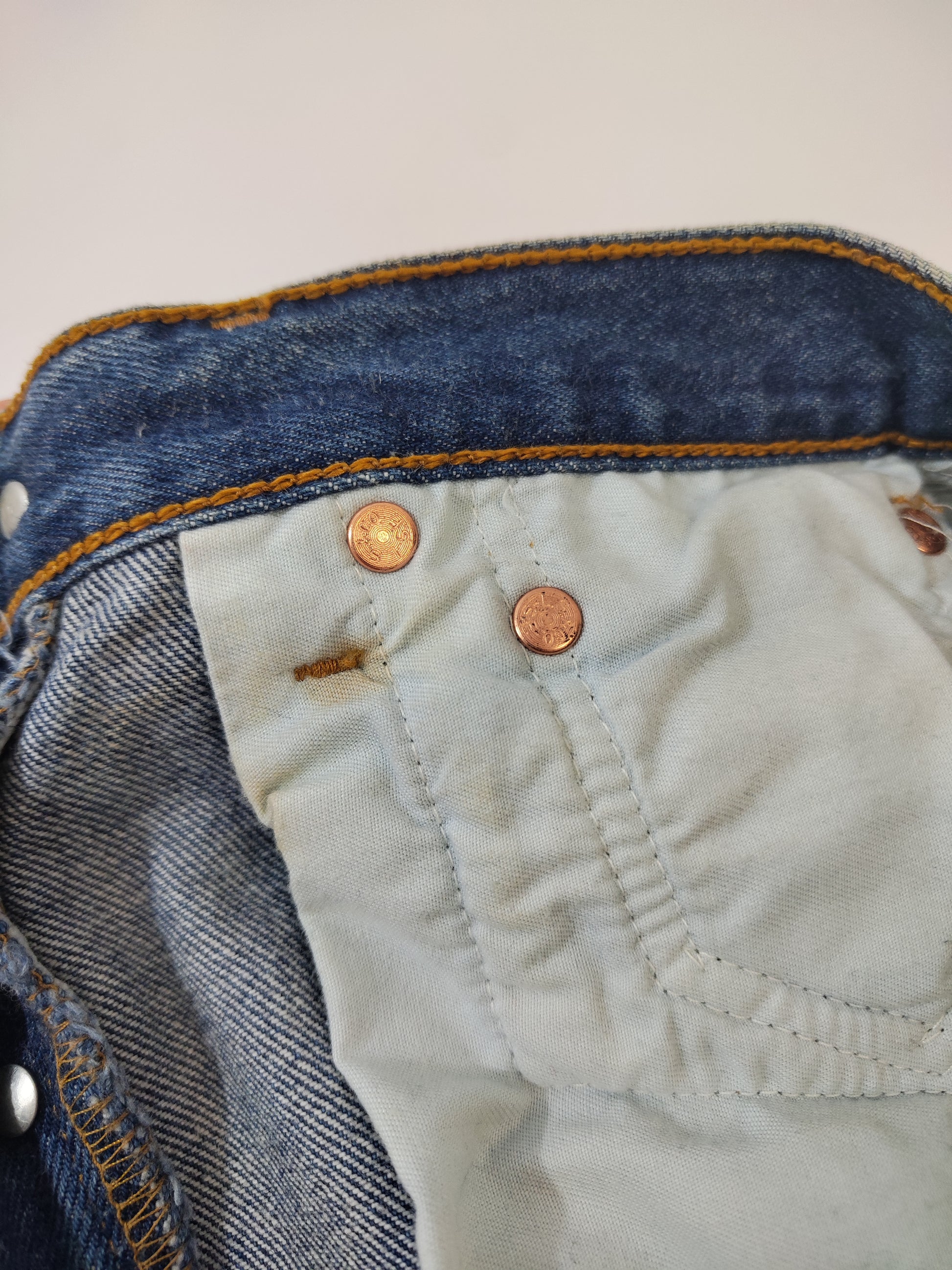Ottime condizioni generali, segnalo leggera impronta dell'adesivo originale con taglie, sul retro della gamba destra (Foto 6).