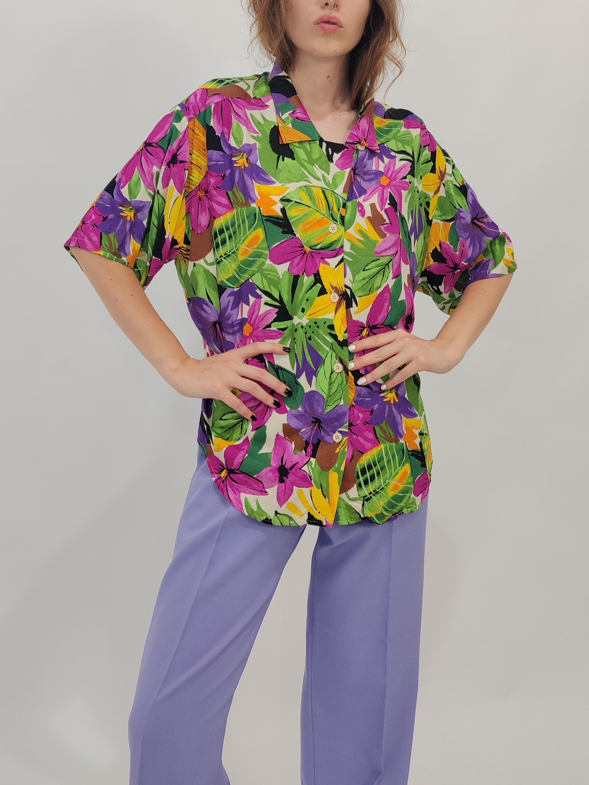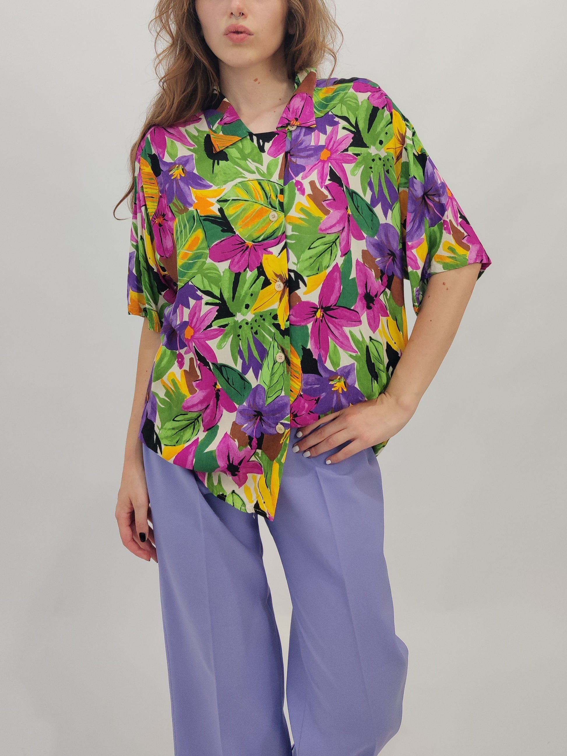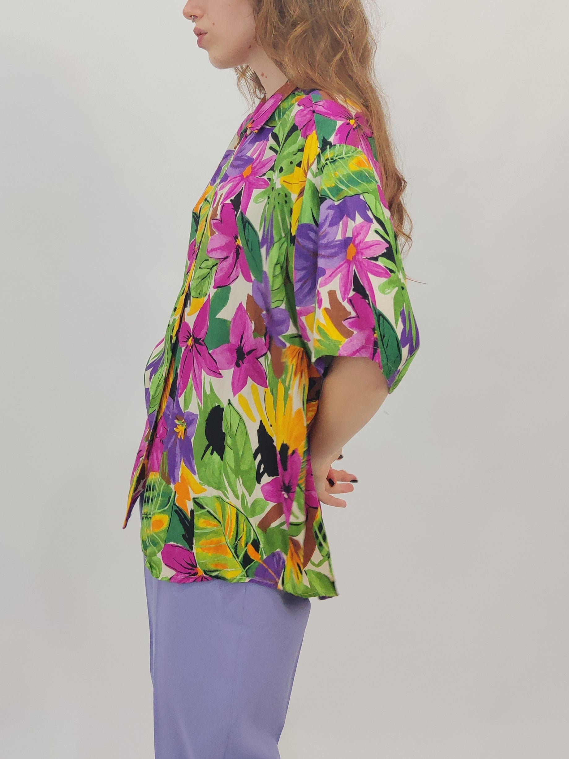 Camicia vintage by Pendleton. Fantasia floreale sui toni del rosa, giallo, verde. Modello con abbottonatura frontale, ampia e fresca.