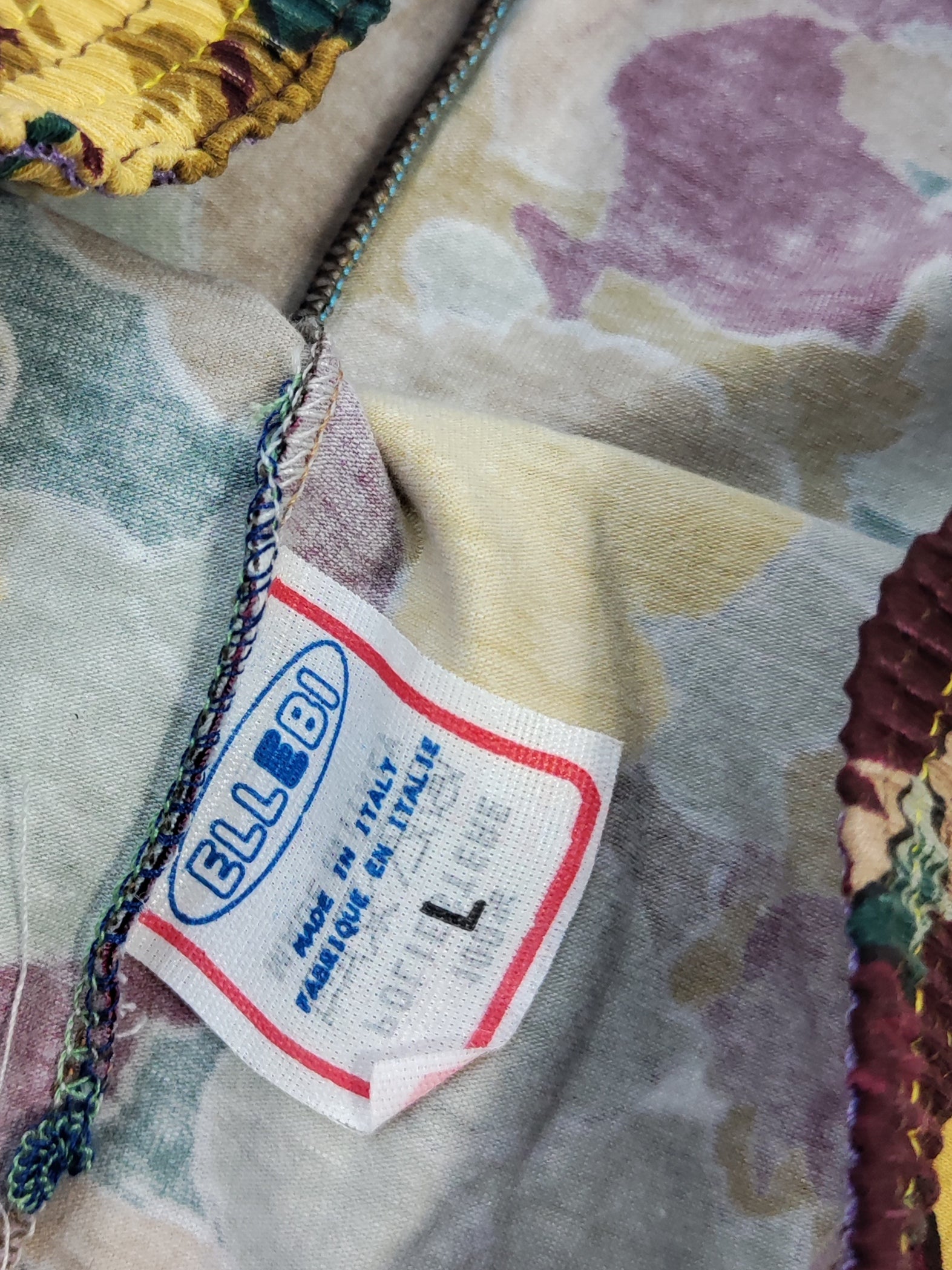 Misteri del Vintage: Al tatto sembra essere maglina di cotone, anche se l'etichetta riporta come materiale Poliestere. Il tessuto è morbido, non ha il finish satinato come il classico pantaloncino da ciclista. Made in Italy.