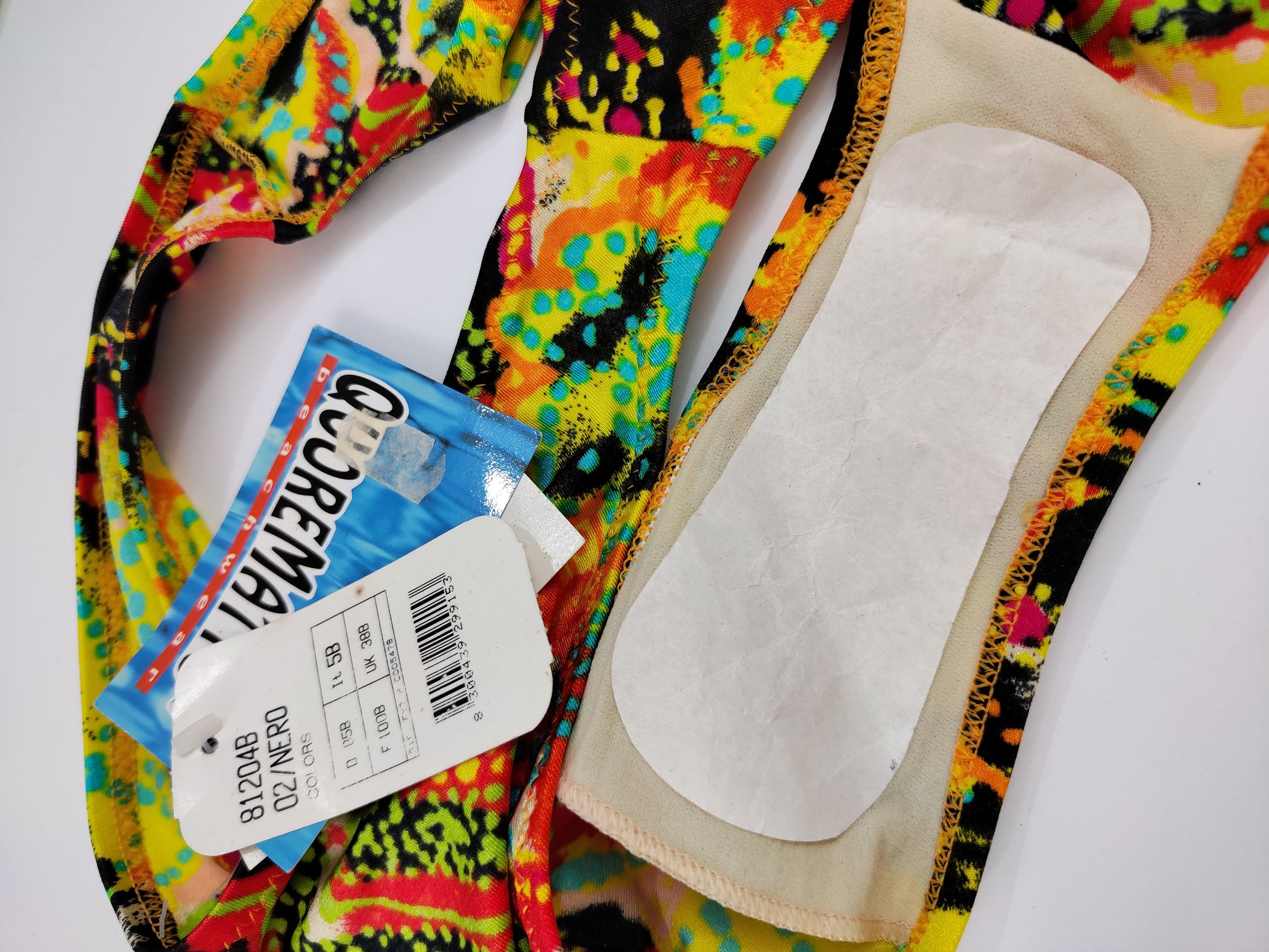 Tutti i costumi presenti in questo drop, cartellinati e non, sono fondi di magazzino degli anni 80-90 e perciò mai stati indossati. Le foto con il capo indossato sono state realizzate con la presenza di uno slip. Successivamente per ogni capo è stata effettuata una prima sanificazione, preservando etichette e protezioni igieniche. Consiglio tuttavia (dopo aver provato e deciso di tenere il capo) di ripetere un lavaggio in acqua per eliminare possibili tracce di polvere. Eventuali imperfezioni vengono sempre segnalate in descrizione.