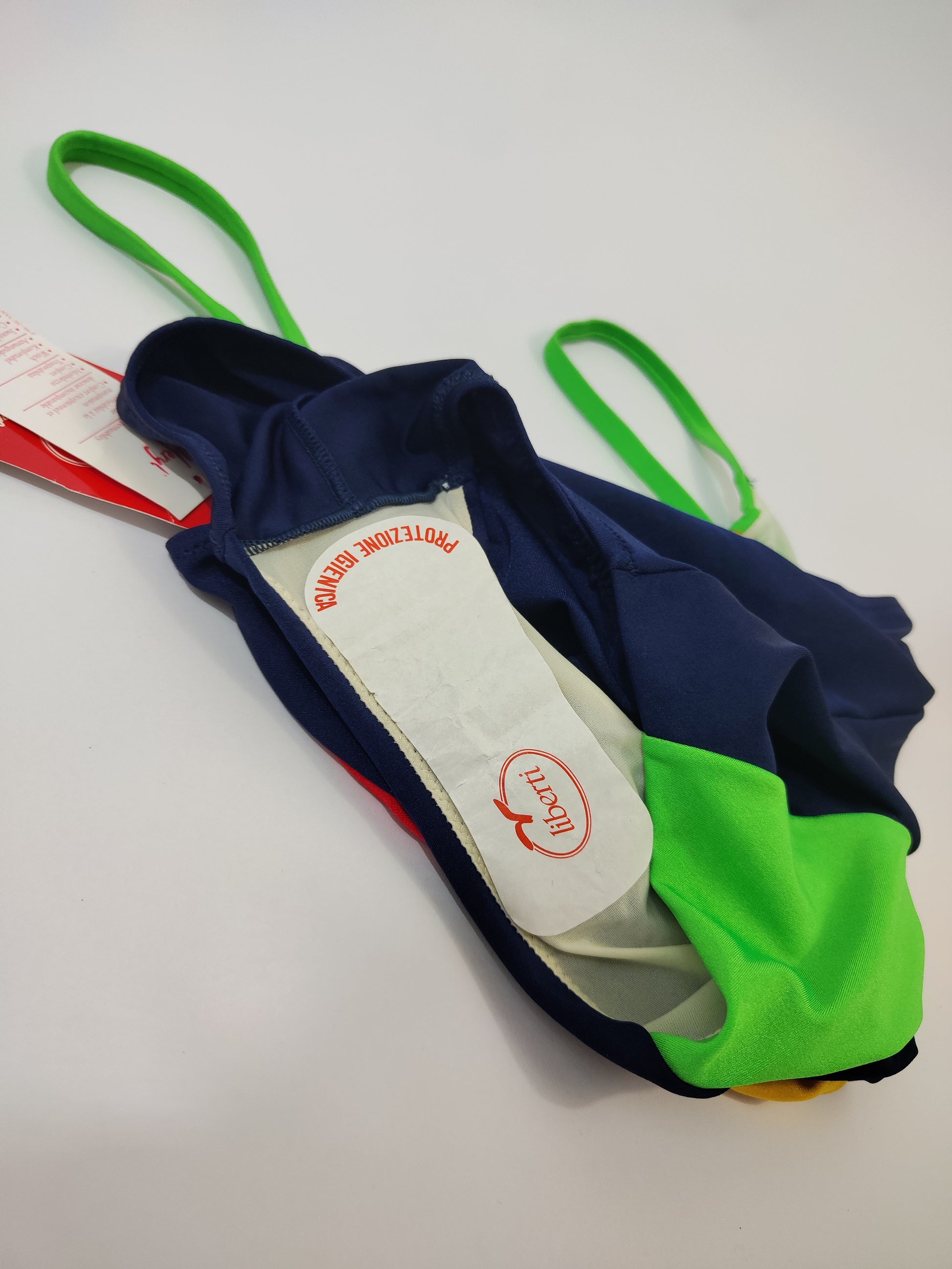 Costume intero vintage by Liberti. A blocchi di colore sui toni del blu navy, verde, rosso e giallo.
