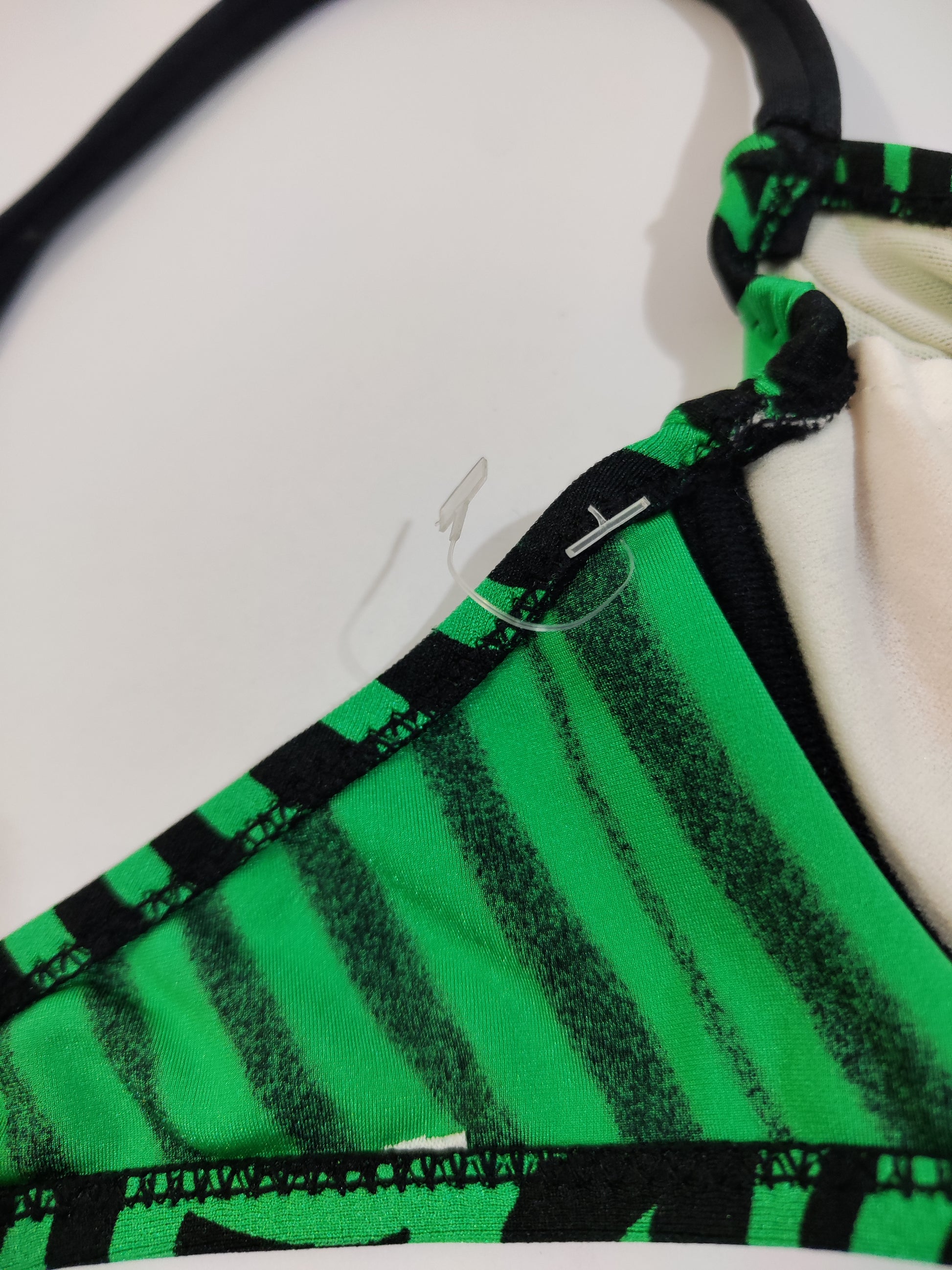 Bikini vintage Deadstock, nuovo senza cartellino, senza protezione igienica. Fantasia Optical super attuale nei colori verde e nero. Slip sgambato a vita alta, parte superiore con ferretto, chiusura sulla schiena con gancetto.